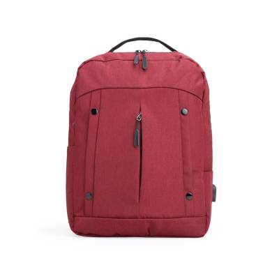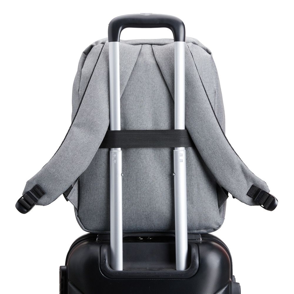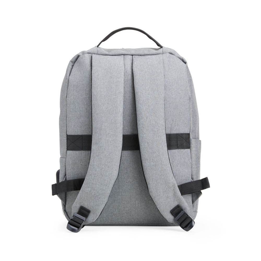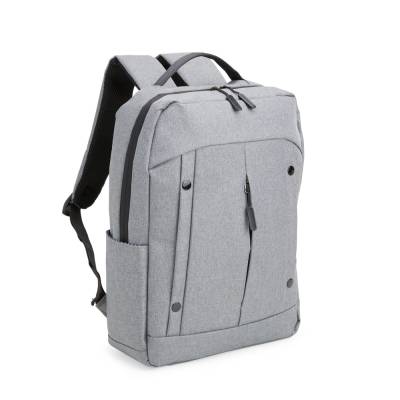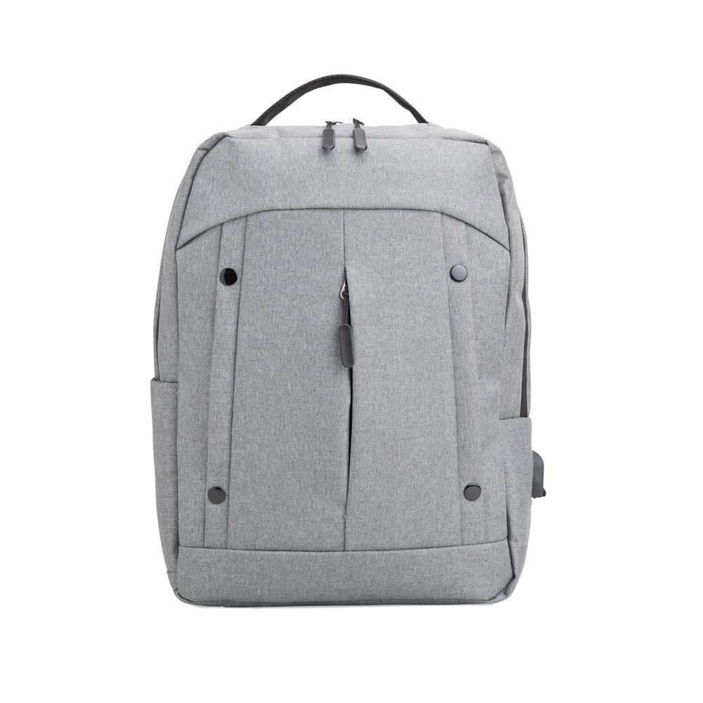 Mochila de nylon 21 Litros com dois compartimentos, sendo o principal com bolso para notebook 15,6. Com divisórias internas para acessórios, a mochila possui bolso lateral, suporte externo USB e alça para engate em malas de viagem.