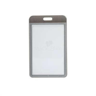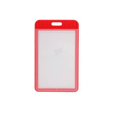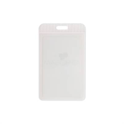 Porta crachá ou porta credencial em plástico resistente. Suporte com visor transparente removível e abertura superior para prender o cordão.