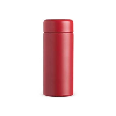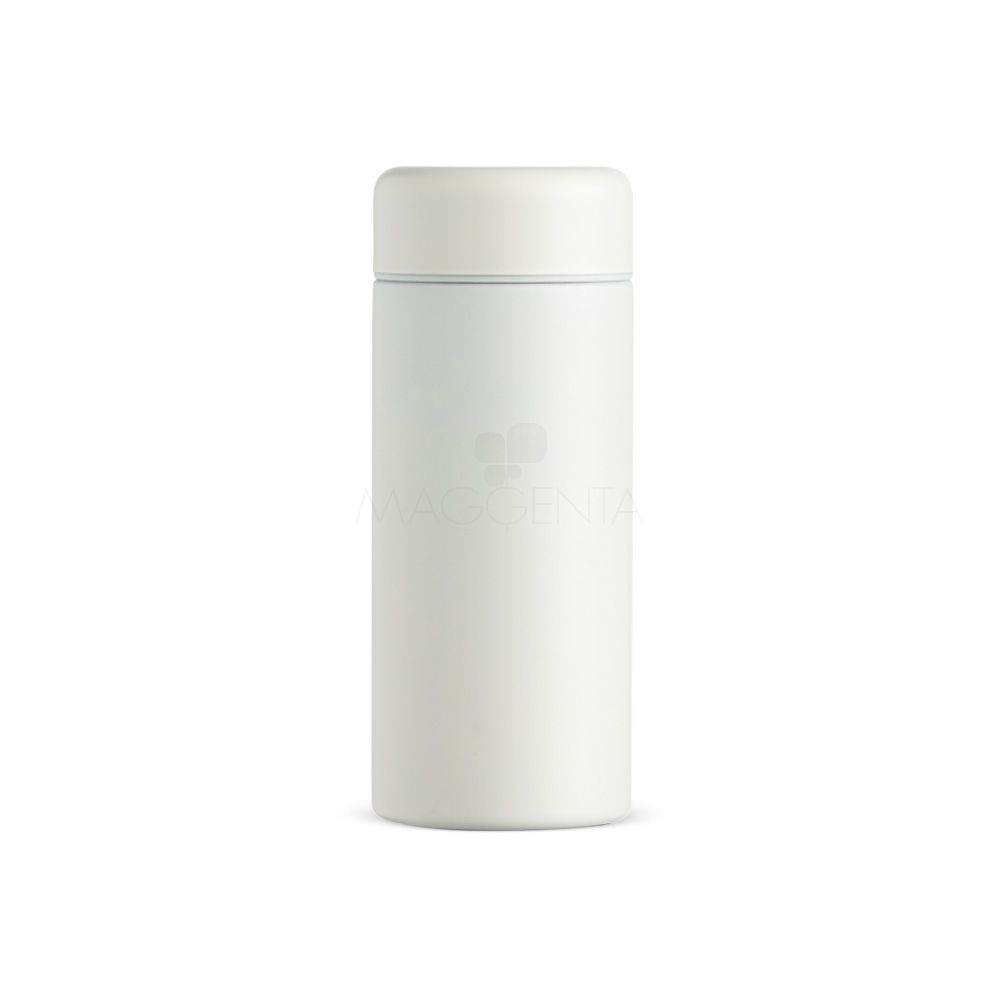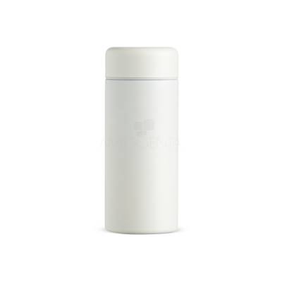 Garrafa térmica inox de parede dupla com capacidade de 200ml.