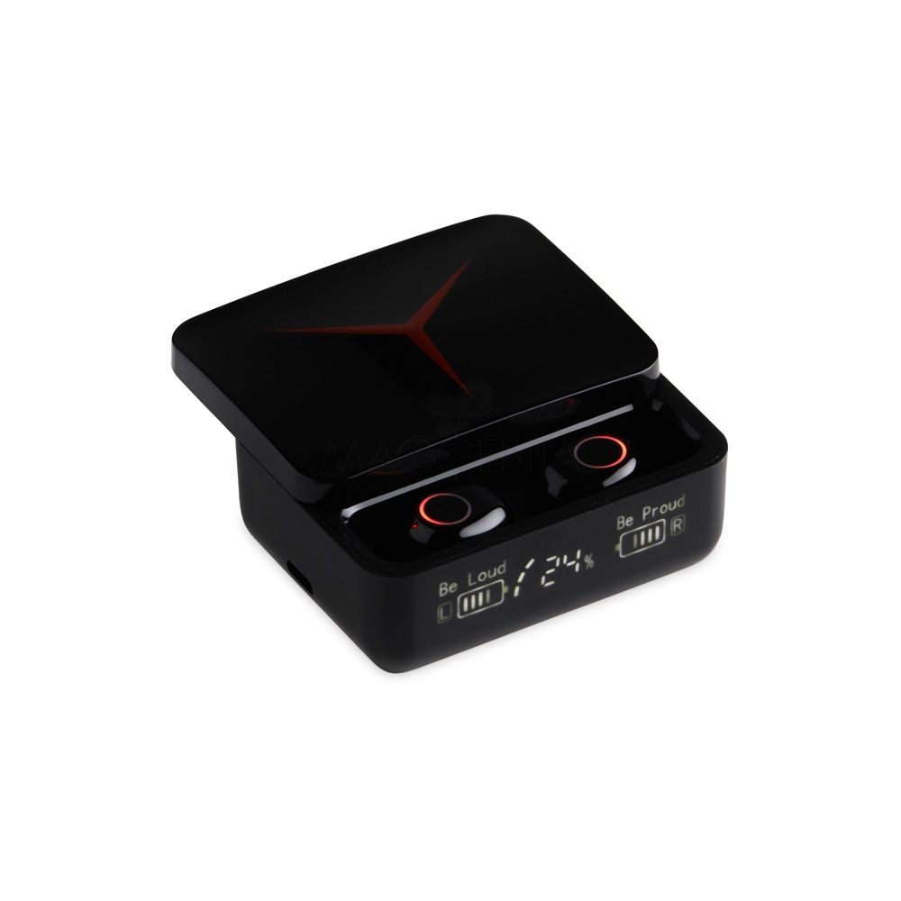 Fone de ouvido bluetooth com comandos touch e case carregador. Com display de bateria, o case pode ser utilizado também como um power bank de baixa capacidade para emergências. Material plástico. Acompanham 2 pares de eartips em diferentes tamanhos e cabo USB.