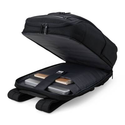 Mochila confeccionada em Nylon 23 litros com detalhes em couro sintético. Contém 5 compartimentos, sendo um bolso com faixa refletiva, divisórias internas para acessórios, bolso para tablet e notebook 15.6, bolso antifurto nas costas, bolso externo na lateral com elástico, suporte externo USB, alça para encaixe em malas de viagem, alças da mochila possuem bolsos integrados para suporte de óculos e cartões.