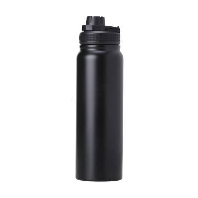 Garrafa térmica com infusor de bebidas, feita em inox 304 de parede dupla com capacidade de 850ml. Tampa com alça para transporte e tampa de proteção para o bocal.