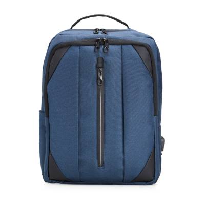 Mochila de nylon 27 litros com três compartimentos, sendo o principal com bolso para notebook 15.6 polegadas. Com divisórias internas para acessórios, bolso lateral, alça para engate em malas de viagem e suporte externo usb.