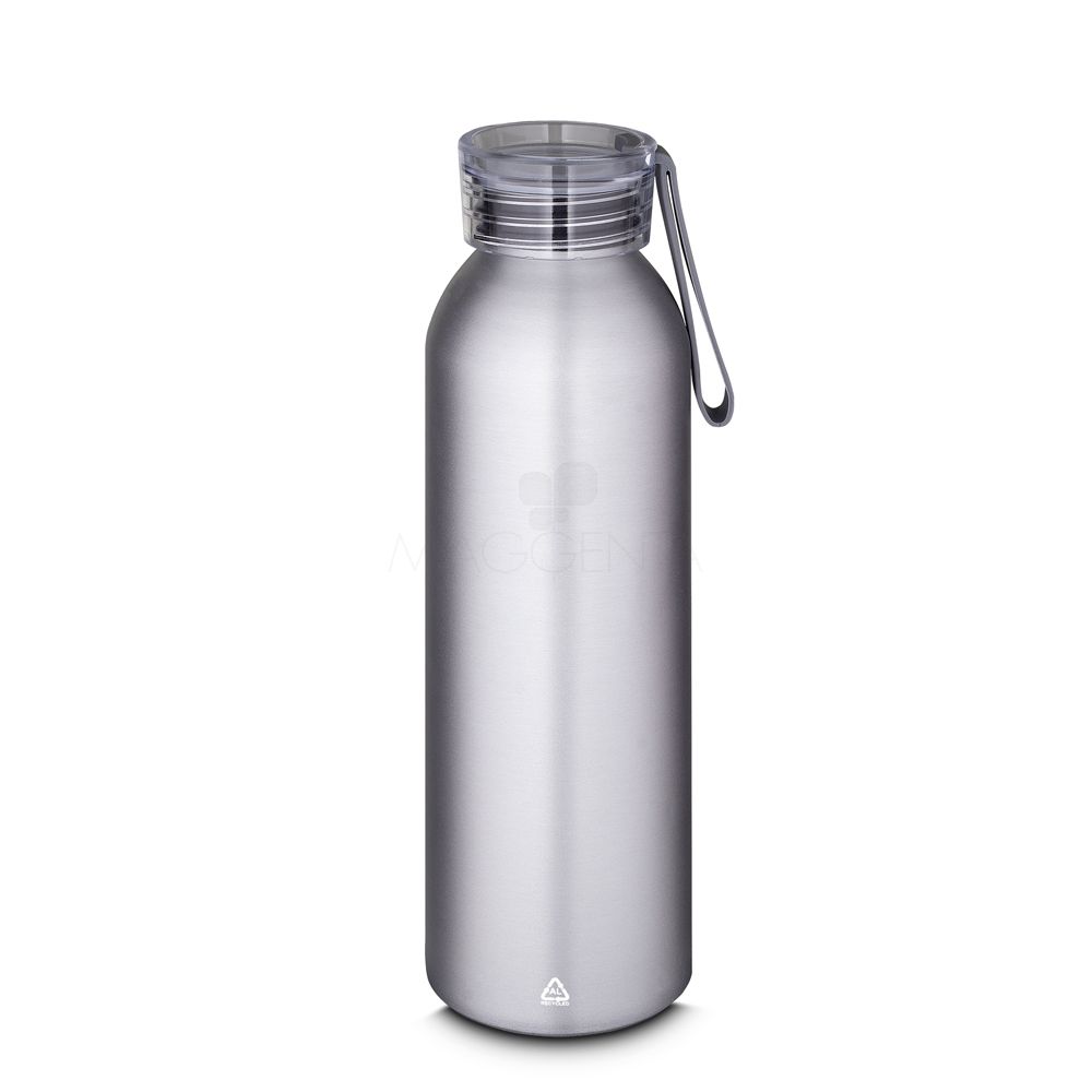 Garrafa em alumínio reciclável com tampa em plástico e alça emborrachada. Capacidade 600ml.