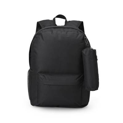 Mochila de nylon de 27 litros com dois compartimentos, sendo um bolso raso para notebook de 15,6 polegadas e bolsos laterais telados. Acompanha estojo de nylon.