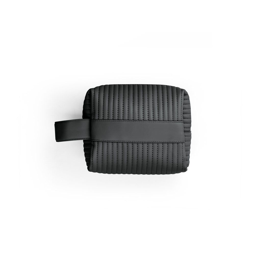 Bolsa de cosméticos em PU (21% de PU reciclado e 30% poliéster reciclado), com interior forrado em poliéster reciclado (100% rPET). Bolsa espaçosa com pega lateral para facilitar o transporte.
