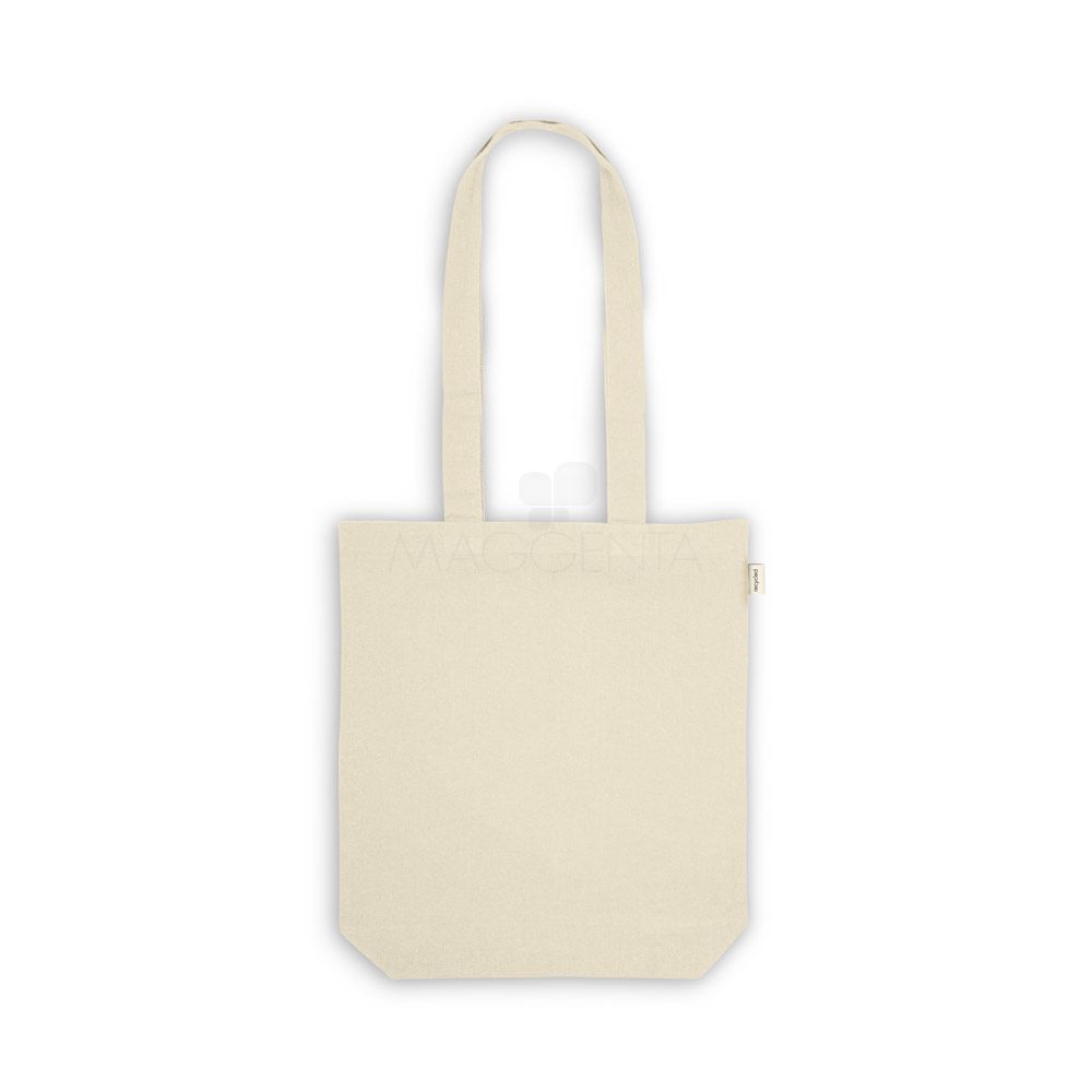 Sacola 100% algodão reciclado (140 g/m²) com alças de 75 cm.