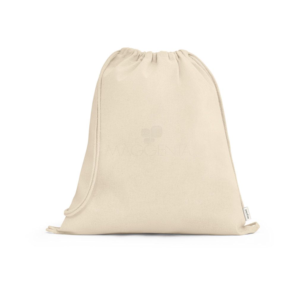 Sacola tipo mochila 100% algodão reciclado (180 g/m²) com alças.