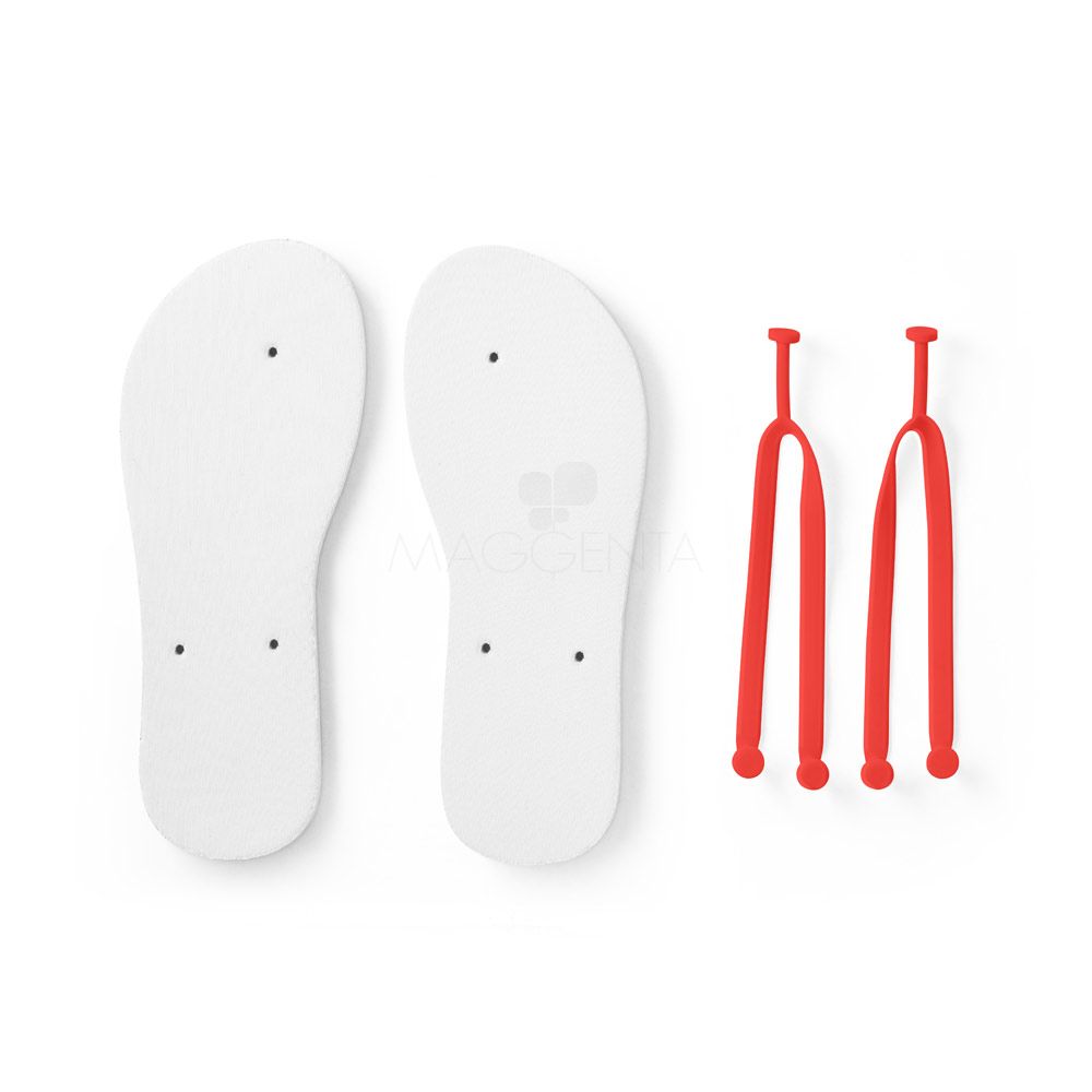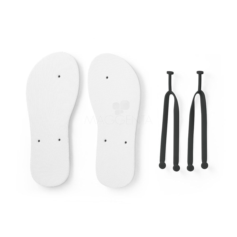 Chinelos confortáveis com sola em EVA e tira em PVC. A sola é totalmente personalizável em sublimação. Tamanhos disponíveis: P/M (36 ao 39). Fornecidos num polybag.