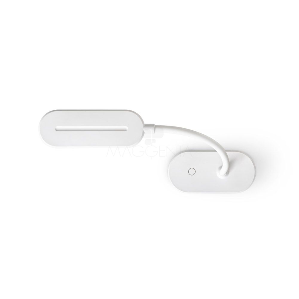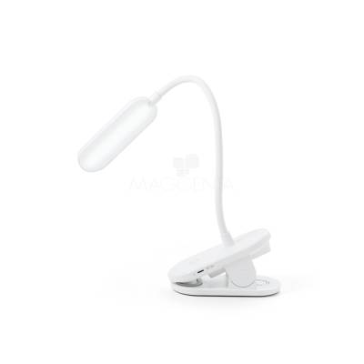 Luminária de mesa portátil em ABS 65% reciclado com 140 lumen e clip para segurar às superfícies. A base é antiderrapante e o tubo é maleável em 360º que permite ajustar com facilidade a direção da luz. Tem uma bateria incorporada de lítio de 1200 mAh. Contém um interruptor para ligar e desligar com 3 níveis de luminosidade: Luz alta (aproximadamente 3 h de utilização), luz média (aproximadamente 7 h de utilização) e luz baixa (aproximadamente 30 h de utilização). Incluso um cabo de carregamento USB-C. Fornecida em caixa presente em papel kraft reciclado.