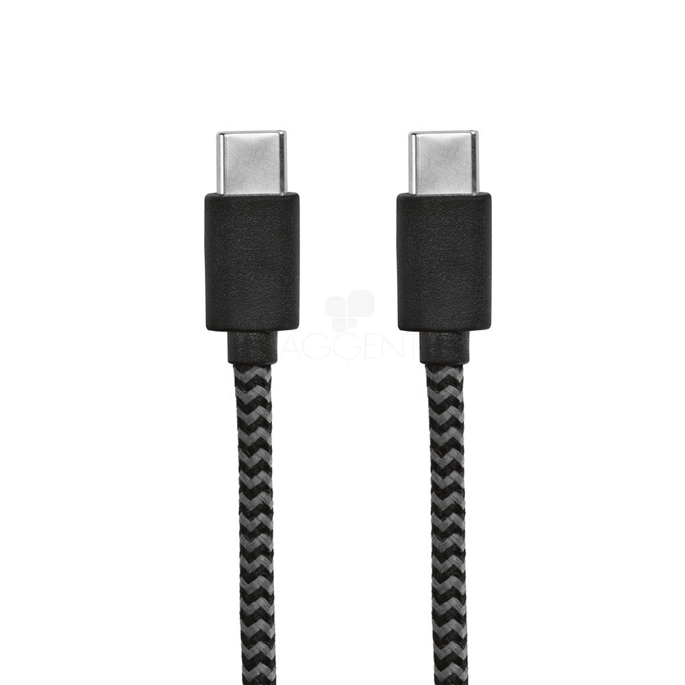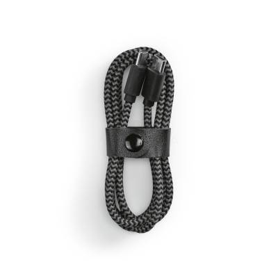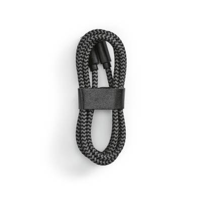 Cabo USB-C de carregamento rápido em PET 100% reciclado (100% rPET). Potência de entrada e saída de 3A. Incluso correia para organizar o cabo à sua maneira. Fornecido em caixa presente de papel kraft.