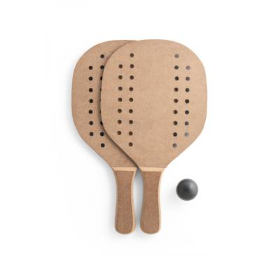 Raquetes de praia em MDF com bola inclusa. Fornecidas individualmente num saco em 100% algodão.