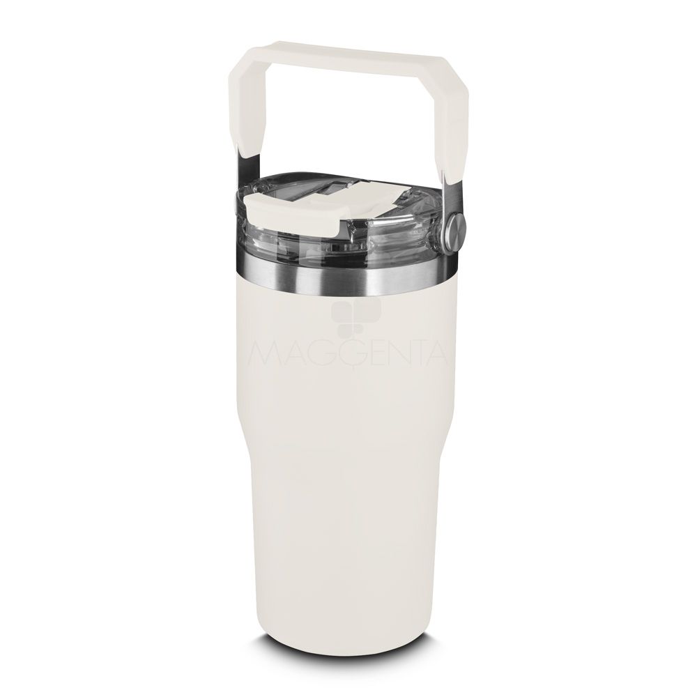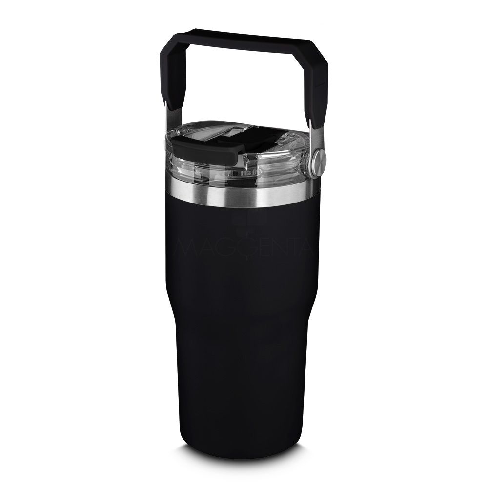 Garrafa térmica em aço inox com parede dupla com capacidade de até 650ml,tampa rosqueável com alça em plástico, permite-se hidratar por canudo ou bico,com e anel de silicone para vedação.
