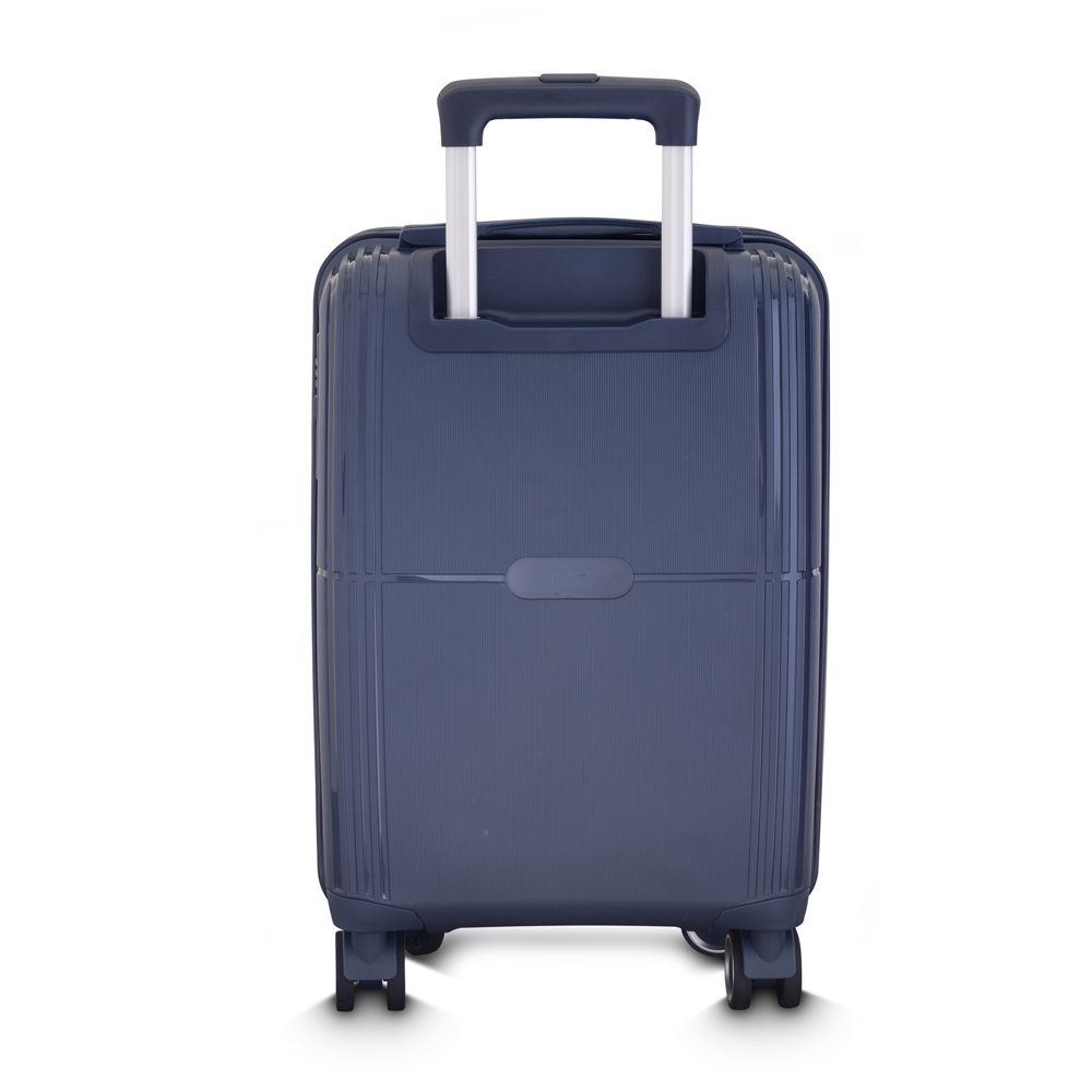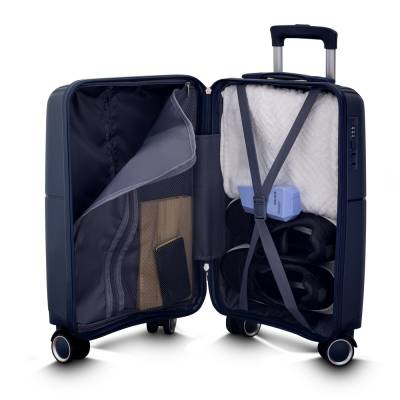 Mala viagem pequena em Polipropileno com abertura frontal com zíper para acesso ao interior da mala, sistema de carrinho de aço, cadeado com senha alça de mão na latera e na parte superior e quatro rodas de 360 graus. Acompanha plaquinha em inox para personalização.