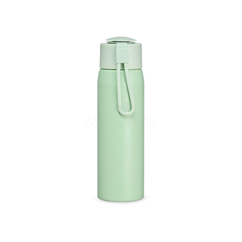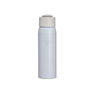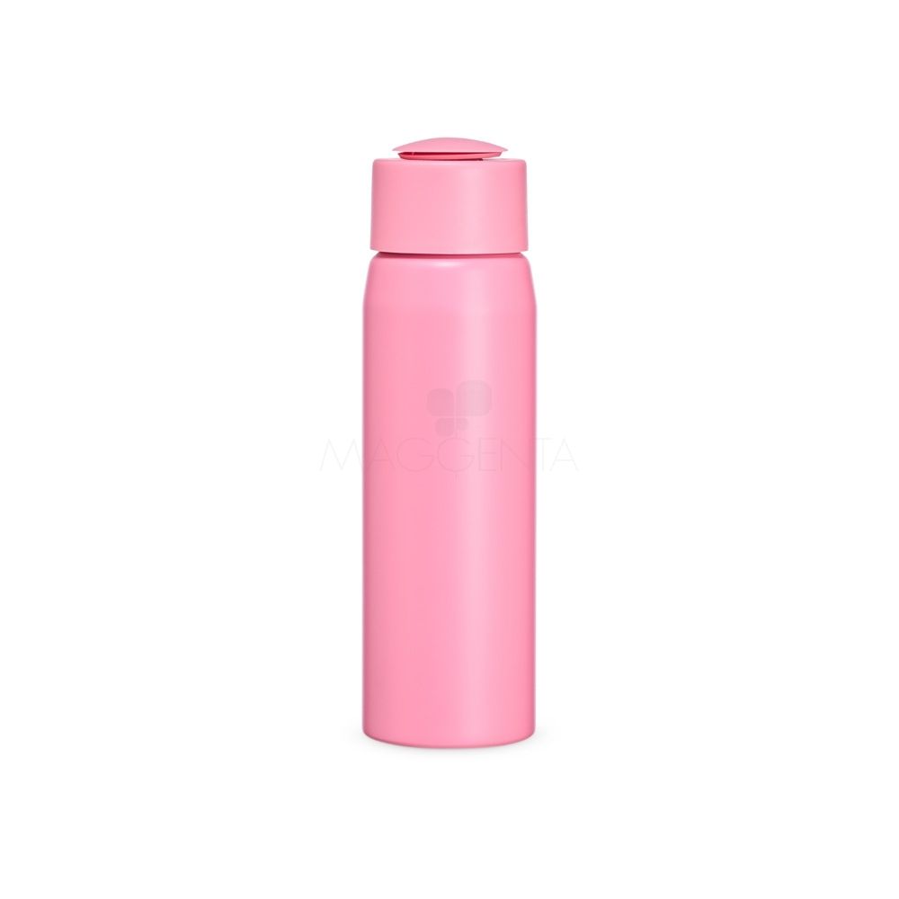 Garrafa alumínio 600ml com acabamento fosco. Possui tampa rosqueável com alça para transporte.
