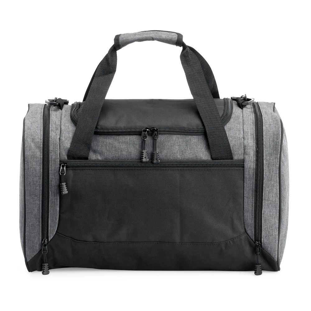 Bolsa de 46 litros confeccionada em nylon resistente à água, com quatro compartimentos, incluindo um bolso lateral com parte telada exclusivo para tênis. Possui alça transversal regulável e removível, além de duas alças de mão.