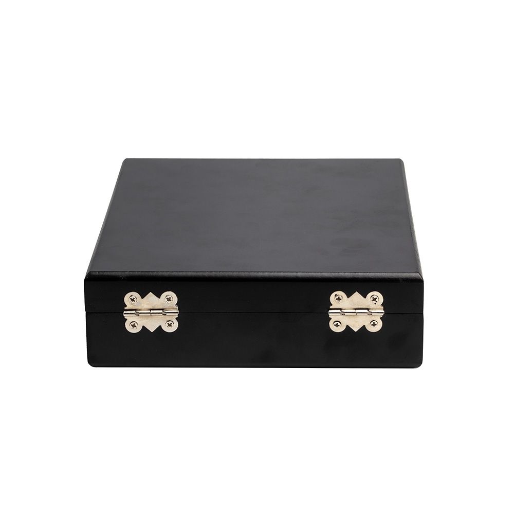 Se divirta enquanto degusta um bom vinho! Nosso kit vinho com 4 peças vem em um estojo feito em MDF com trava de segurança e área interna com berço de espuma. Contém wine collar, tampa de bico, bico condutor com tampa e saca-rolhas metálico com lâmina de corte e abridor de garrafa. Acompanham ainda 2 baralhos completos + 2 dados para uma noite completa de jogos, e ainda acompanha uma plaquinha metálica para personalização. Azar é ainda não ter um kit desse!