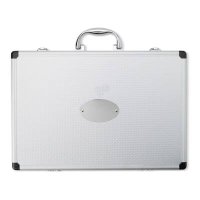 A solução ideal para quem valoriza qualidade nos cortes e organização na cozinha. O kit inclui 5 facas em aço inoxidável, com diferentes tamanhos, perfeitas para uma experiência gourmet. Acompanha uma maleta de alumínio texturizado, com interior revestido de veludo e duas travas que garantem maior segurança. Além disso, a maleta oferece espaço para personalização, tornando o kit ainda mais exclusivo.