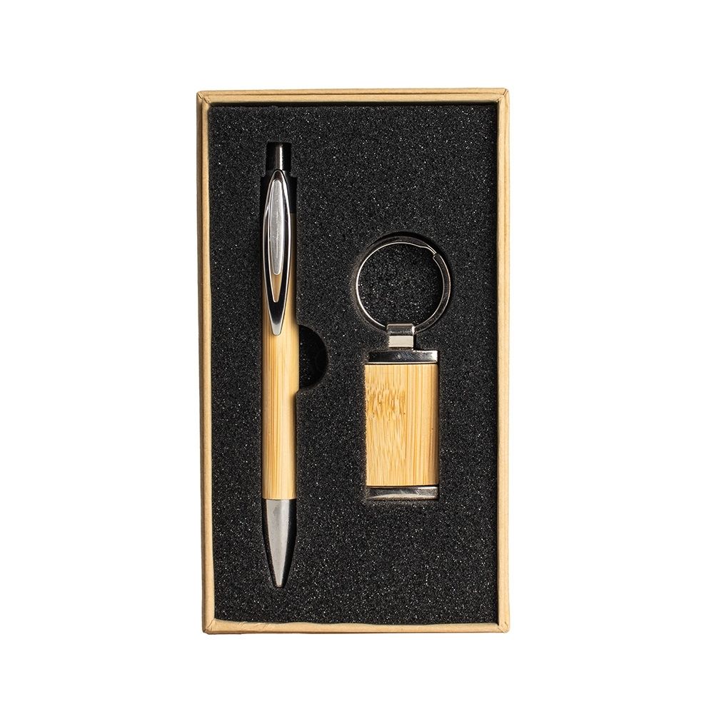 Este kit é a escolha ideal para quem aprecia praticidade e um design natural. O estojo com espuma interna mantém a caneta e o chaveiro bem organizados e protegidos, prontos para o uso. Combinando metal e bambu, as peças têm um visual elegante e resistente, destacando a beleza natural do bambu em cada detalhe. Uma opção funcional e charmosa, perfeita para o dia a dia ou para presentear com bom gosto e simplicidade.