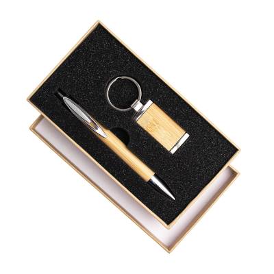 Kit Caneta e Chaveiro Bambu para Brindes