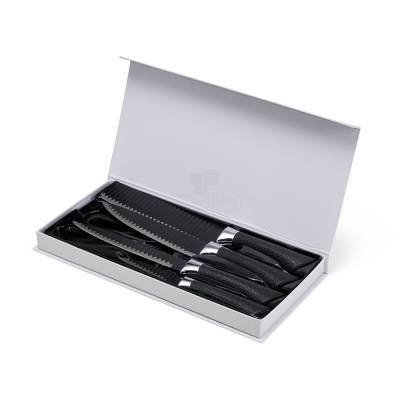 Para os amantes da culinária, nosso Kit de 6 peças é ideal para quem busca precisão e praticidade na cozinha. Com lâminas afiadas em aço inoxidável e cabos plásticos de design aderente, o conjunto oferece segurança e conforto no manuseio, incluindo uma faca de 3 polegadas e três de 6 polegadas para cortes rápidos e precisos, uma tesoura multifuncional e um descascador prático. Além disso, todas as peças vêm acondicionadas em um estojo de papelão com berço plástico e fechamento imantado para proteção dos utensílios.