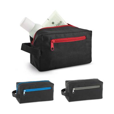 Nécessaire Promocional, produzida em nylon 600D, possui compartimento interno para objetos pessoais do dia a dia, alça de mão lateral, zíper frontal ideal para pequenos objetos e espaço interno com fechamento por zíper. Ideal para brindes promocionais e eventos corporativos.
