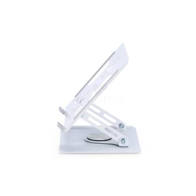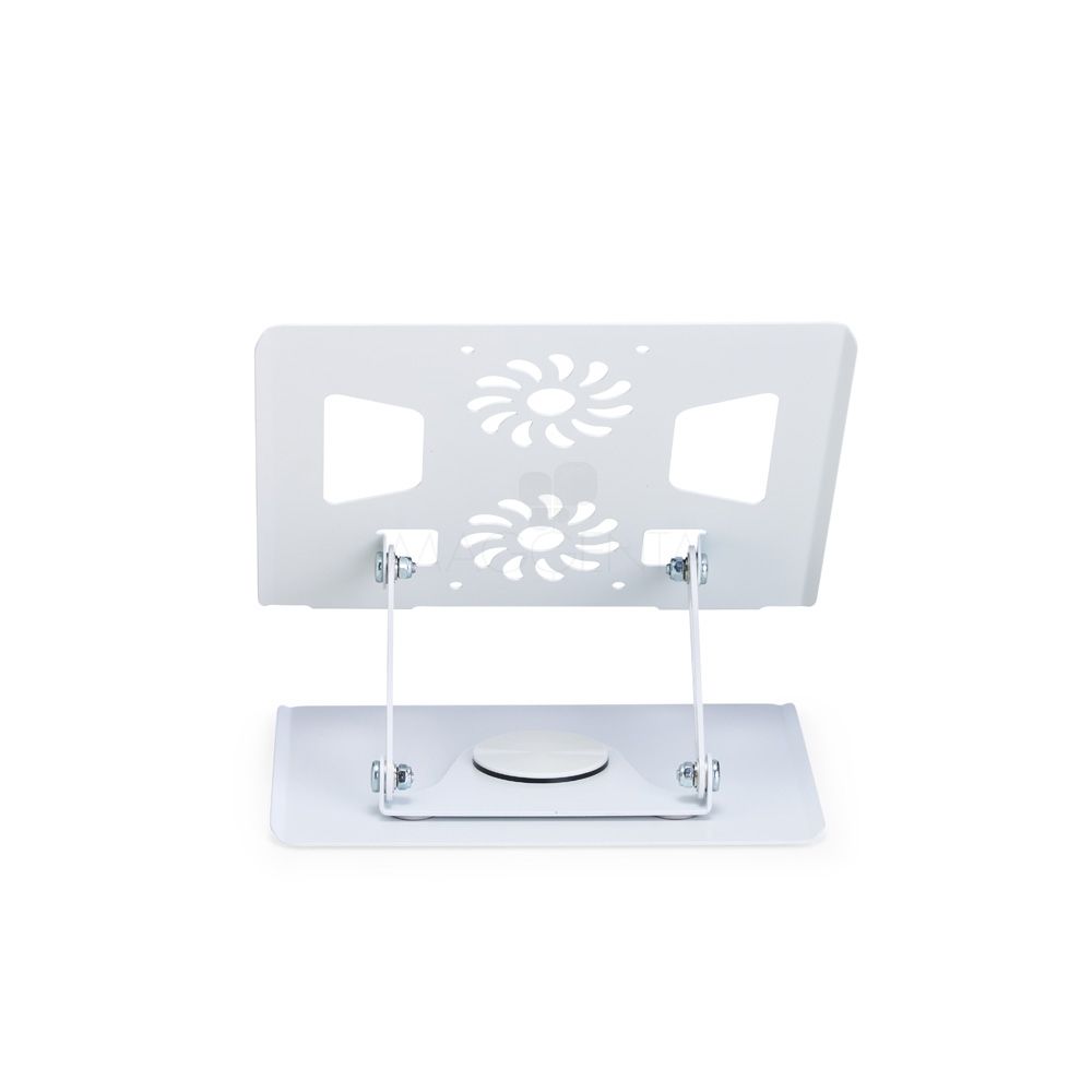 Suporte articulado para notebooks com ajuste em diversos ângulos, com a possibilidade de realizar movimentos giratórios em até graus, tudo isso para alcançar a melhor posição de uso do aparelho com mais conforto e ergonomia nos mais variados ambientes, como escola, trabalho ou em casa. A construção funcional em aço do suporte e suas aberturas nas laterais e no centro ajudam na dissipação de calor do aparelho aliada com as tiras antiderrapantes nas laterais e nas bordas inferiores garantem um uso mais seguro e estável do eletrônico.