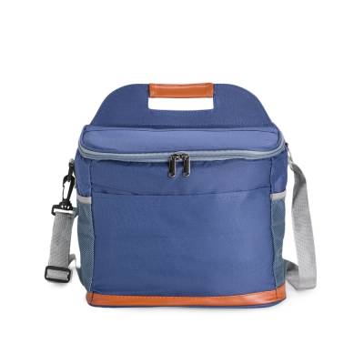 Bolsa térmica confeccionada em Oxford impermeável, com detalhes em couro sintético, fechamento em zíper e capacidade de até 11 litros. Possui revestimento interno em PEVA, que proporciona a conservação de temperatura de alimentos e bebidas por mais tempo. Conta com bolso frontal aberto, dois laterais em tela de nylon com elástico, alça de mão, alça transversal ajustável e abridor de garrafas em inox fixado em uma das laterais.