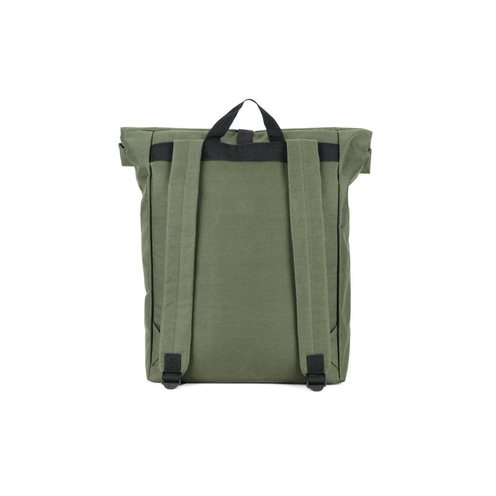 Mochila "Roll-top" para notebook em 600D e forro em 210D. Possui um compartimento principal espaçoso para notebook até 17.3", com fecho de enrolar no topo. Bolso frontal com zíper. Capacidade até 21 L.