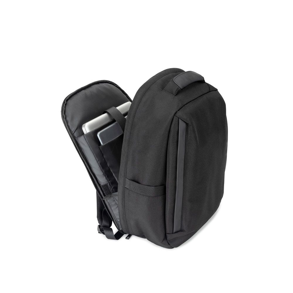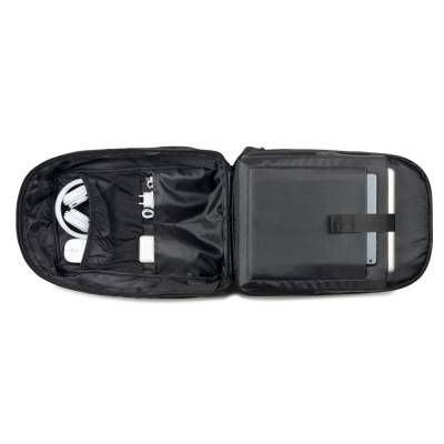 Mochila antirroubo com design único pensado para garantir maior segurança aos seus dispositivos e documentos. Composta por poliéster reciclado (rPET) 600D twill, resistente à água, com detalhes em PU e interior em poliéster reciclado (rPET) 210D. Possui um compartimento principal com bolso almofadado para notebook até 17.3" e para tablet até 10.5", bolsos laterais e um compartimento frontal. A mochila oferece-lhe um maior conforto nas suas viagens devido à sua pega superior almofadada e parte posterior com acolchoamento extra e alça para trolley com bolso para pequenos objetos. Os bolsos internos facilitam na arrumação e organização do seu material. Capacidade até 20 L.