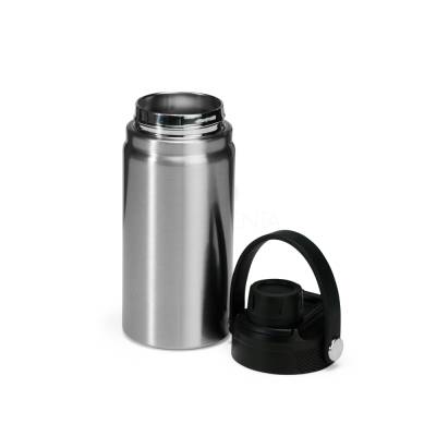 Garrafa térmica em inox com capacidade para até 400ml. Apresenta estrutura de parede dupla e vedação a vácuo, que mantém a temperatura de líquidos por mais tempo sem transferência para o exterior. Possui tampa plástica rosqueável com protetor de o bocal e alça fixa para transporte.