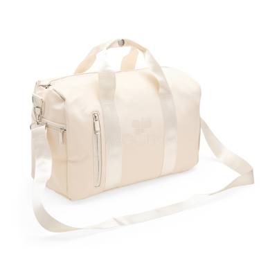 Bolsa confeccionada em couro sintético impermeável com fechamento em zíper e capacidade máxima de 20 litros. Apresenta compartimento interno revestido em nylon e bolso dedicado a objetos menores. Possui dois compartimentos externos em tamanhos diferentes, bolso em tela de nylon e três alças: duas de mão e uma transversal removível.