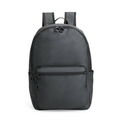 Mochila confeccionada em filme sintético tipo couro impermeável com fechamento em zíper e capacidade de até 23 litros. Apresenta compartimento interno com divisória para notebooks de até 15,3 polegadas. Possui três compartimentos externos em tamanhos variados, bolso lateral aberto e tecido respirável aplicado na área das costas e nas alças.