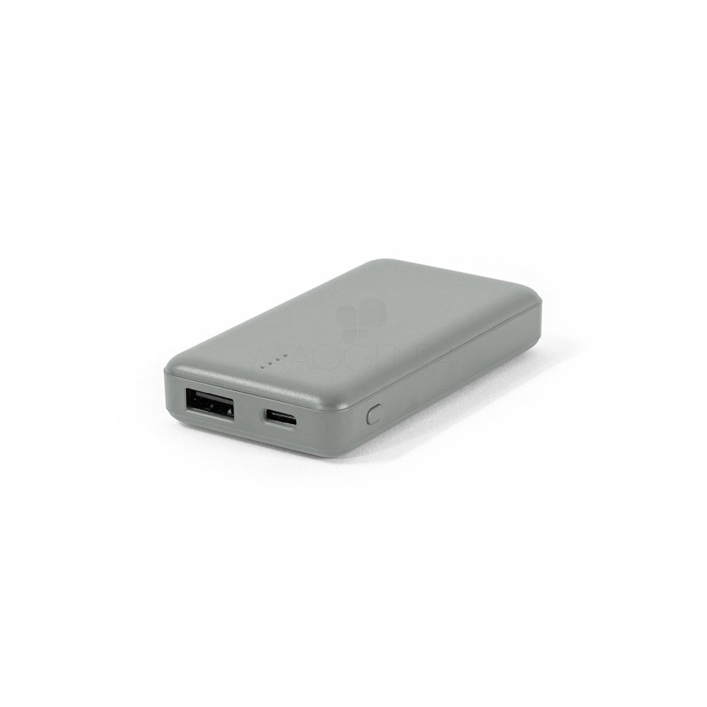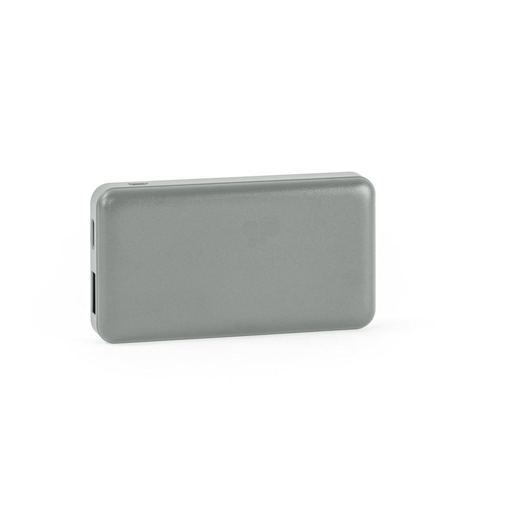 Bateria portátil em ABS 100% reciclado. Leve e com dimensões extremamente reduzidas é a solução perfeita para levar com você a qualquer lugar e garantir a bateria necessária em situações de emergência.Com capacidade de 4.000 mAh, indicador de nível de carga, uma porta de entrada USB-C e uma porta de saída USB-A. Incluso um cabo de carregamento USB-C.