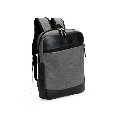 Mochila confeccionada em Poliéster PVC mescla com detalhes em couro sintético e capacidade de até 11 litros. Apresenta divisória interna em tecido telado respirável, ideal para notebooks de até 14 polegadas. Possui compartimento frontal com fechamento em zíper, duas alças para as costas, uma alça de mão e engate posterior para malas de viagem.