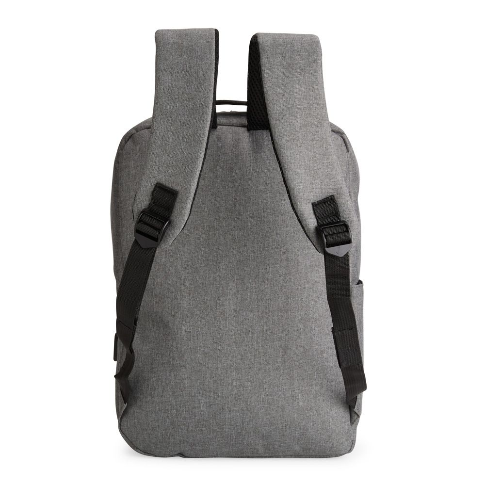 Mochila confeccionada em nylon Oxford impermeável, com fechamento em zíper, puxadores com detalhes em nylon e plástico e capacidade de até 14 litros. Possui compartimento interno principal com bolsos de tamanhos variados e divisória para notebooks de ate 15,6 polegadas. Possui três compartimentos externos, um deles com abertura lateral. Dispõe também de bolso lateral, porta USB, alça de mão em poliéster 210D e alças para as costas em tecido respirável.