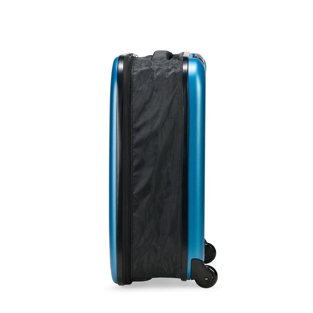 Mala de viagem expansível em ABS com bordas em poliéster que, ao ser expandida, comporta a capacidade máxima de 40 litros. Conta com forro interno em poliéster 210D, cinta compressora para roupas e placas rígidas em PVC que mantêm a armação da mala quando desdobrada. Dispõe ainda de duas rodinhas e alça retrátil em alumínio com puxador em plástico. Acompanha uma faixa em poliéster com seção elástica para envolver a mala dobrada.