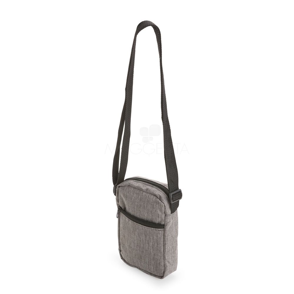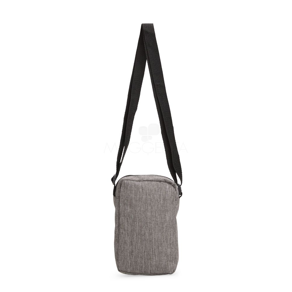 Bolsa de ombro resistente à água, confeccionada em poliéster mesclado com PVC, com fechamento em zíper e alça ajustável. Possui divisória em tela de nylon no compartimento interno e um bolso frontal para a organização de objetos.