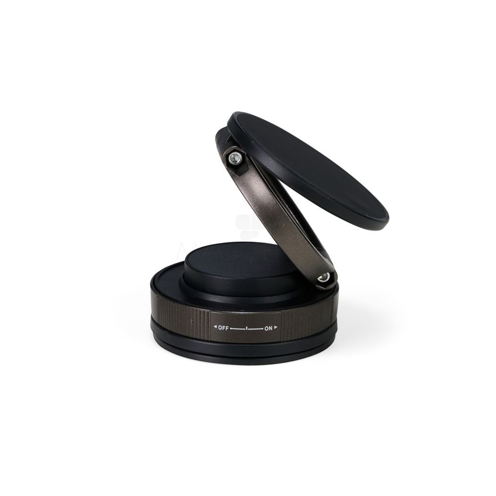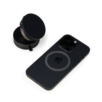 Suporte magnético em plástico ABS com articulação em diferentes ângulos e rotação de 360 graus no próprio eixo. Possui superfície magnética para fixação de aparelhos na vertical ou horizontal, compatível com dispositivos magnéticos ou com o anel adaptador incluso. Conta com mecanismo giratório para pressão da ventosa em superfícies lisas. Acompanha anel magnético adesivo, placa plástica com adesivo, kit de lenços e chave Allen.