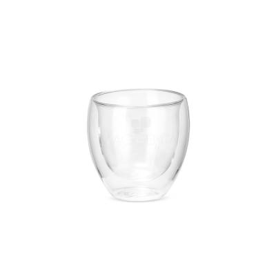 Copo de vidro borossilicado com capacidade para até 150ml e estrutura de parede dupla, que ajuda a impedir o contato direto entre a temperatura do líquido e a parede externa da caneca.