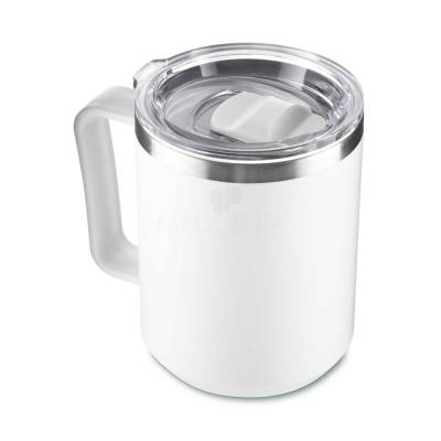 Caneca produzida em plástico PP de 450ml com interior em inox 304 para conservação da temperatura do líquido. Possui alça ergonômica e tampa plástica com vedação de encaixe.