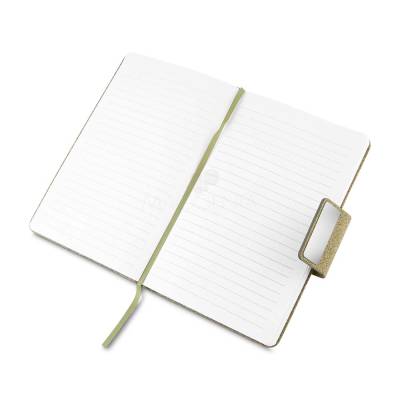 Caderno de anotações com capa em PU e fibra de chá ou café, 80 folhas 70 g/m², engate para caneta com fechamento magnético e placa de metal, não acompanha caneta.