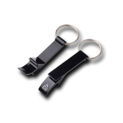 Conjunto composto por chaveiro pé de galinha em alumínio reciclado e caneta de acionamento em alumínio reciclado, com régua no corpo e sem clipe.