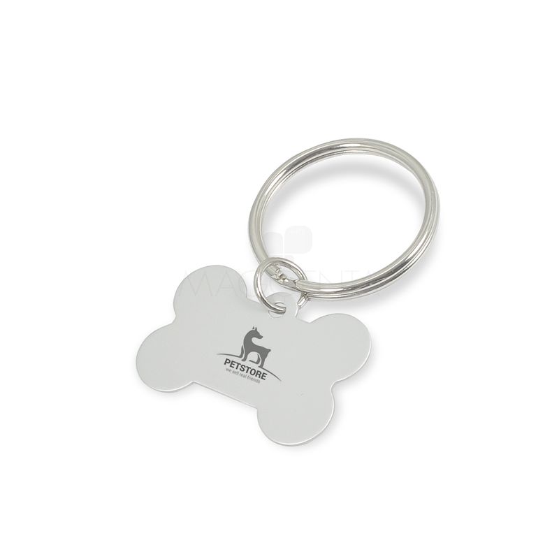 Produzido em alumínio com argola de metal no formato osso, serve também como pingente de identificação de seu animal de estimação.