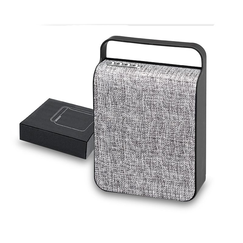 Caixa de som bluetooth com transmissão de música sem a necessidade de fios, com acabamento emborrachado e detalhe em tecido poliéster. Possui entrada para cartão de memória, radio FM, ligação stereo 3,5 mm, função para atender chamadas, controle de volume e conexão á playlist do dispositivo móvel. Sua potência 2x3W e a autonomia até 3 horas. Incluso cabo USB para carregar e embalagem.