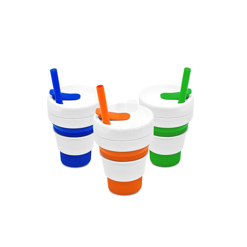 Copo retrátil personalizado produzido em silicone e acabamento em plástico com capacidade de 355 ml, possui canudo removivel de silicone, tampa de encaixe, bico com protetor e luva plástica para evitar queimar a mão com o líquido quente. Com um designer inovador e funcional, pode ser utilizado tanto para se beber bebidas quentes ou geladas. Ideal para divulgar sua empresa em eventos corporativos, brindes personalizados e campanhas promocionais.