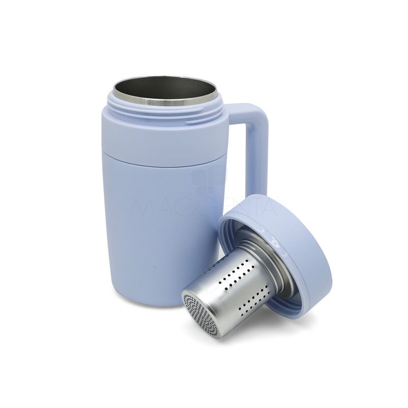 Caneca térmica personalizada em inox com pintura personalizada e capacidade para 500ml. Possui infusor de chá em metal, tampa rosqueável com anel vedante e display em LED com termômetro digital na tampa para indicar a temperatura do líquido. Ideal para brindes promocionais e eventos corporativos.