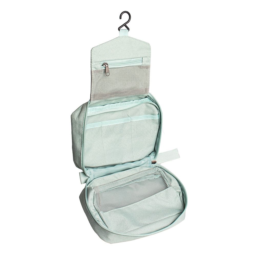 Mantenha seus itens de higiene organizados com esta nécessaire de grande capacidade, perfeita para viagens e o dia a dia. Ela possui três áreas de armazenamento: um bolso superior em malha, ideal para pequenos itens; um compartimento central com zíper para itens maiores e três bolsos organizáveis para fácil acesso; um bolso inferior em malha para guardar objetos mais volumosos. Prática, vem com um gancho para pendurá-la e facilitar o acesso aos produtos. E ainda contém um bolso externo com menos espaço, mas ideal para carregar itens menores. Feita em poliéster, é compacta e fácil de transportar, cabendo em mochilas e malas. Perfeita para academia, viagens ou atividades ao ar livre.