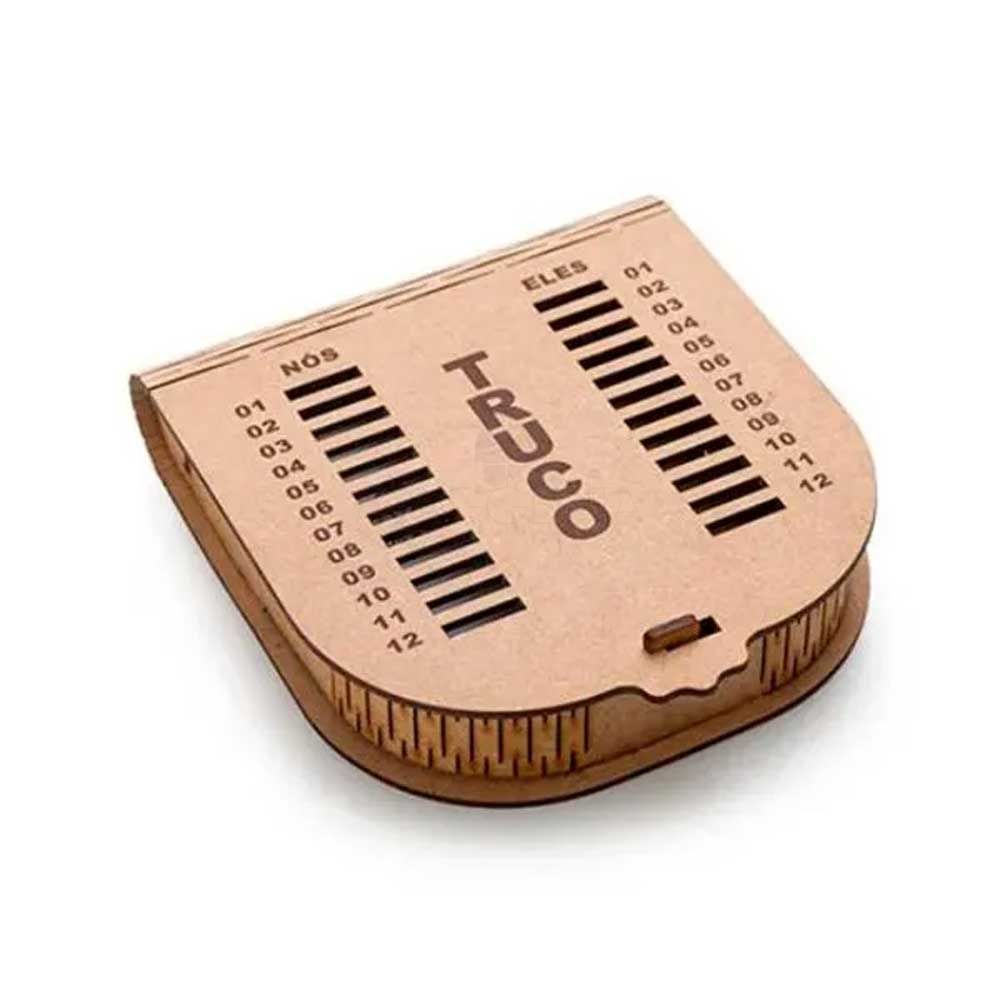 Kit para Churrasco, Cerveja e Truco. Composto por tábua com três furos em Bambu; garfo trinchante e faca 8" em Madeira/Inox; quatro copos de Cerveja em vidro; caixa para truco com jogo de cartas, marcador de tentos e jogos em MDF. Como cortesia, na faca 8" fazemos uma gravação com os cortes do boi.