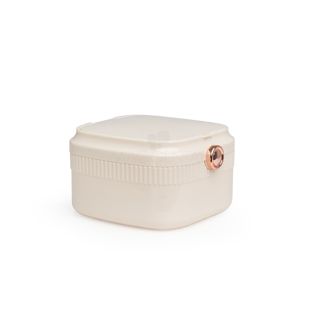 Suas joias merecem um lugar especial, e com este porta-joias, manter os acessórios organizados e protegidos nunca foi tão fácil e elegante. Produzido em plástico e de design compacto, sua abertura principal é cheia de glamour, destacada por um lindo botão na cor rose gold. Sua parte interna conta com três compartimentos: um removível e emborrachado, ideal para anéis, brincos e colares, e outro com divisória, perfeito para itens maiores como batons, pulseiras ou o que mais desejar. Além disso, possui um compartimento com espelho embutido, tornando o momento de se arrumar ainda mais especial na hora de escolher os acessórios.